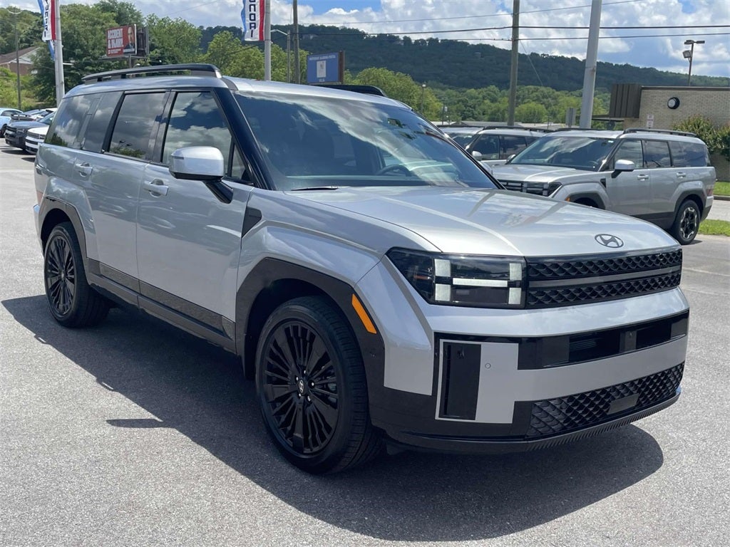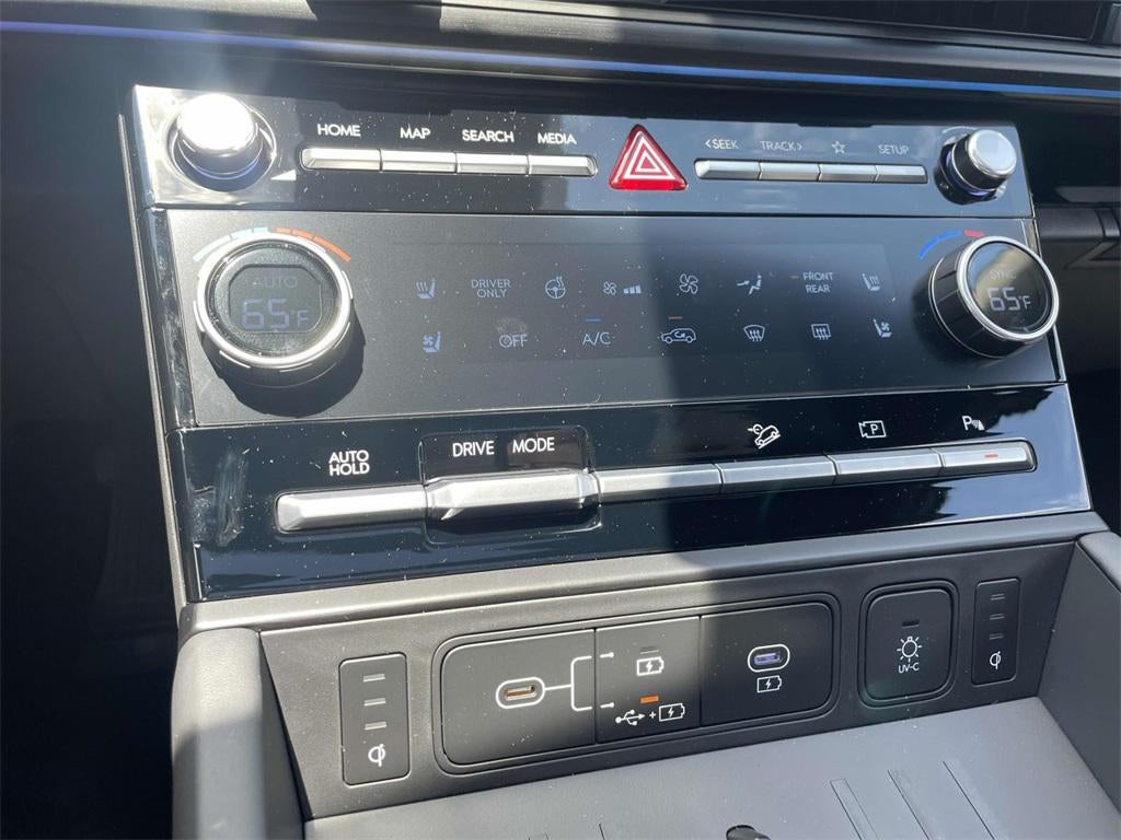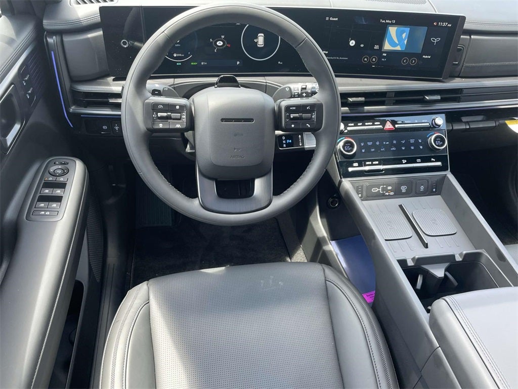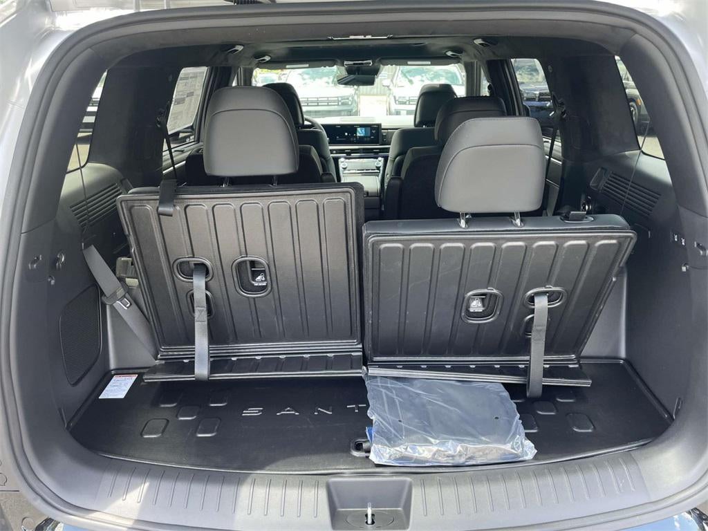 2025 Hyundai Santa Fe Hybrid Calligraphy Calligraphy I4, 12 Speakers, 3rd row seats: bench, 4-Wheel Disc Brakes, ABS brakes, Air Conditioning, Alloy wheels, AM/FM radio: SiriusXM, Apple CarPlay & Android Auto, Auto High-beam Headlights, Auto-dimming Rear-View mirror, Automatic temperature control, Brake assist, Bumpers: body-color, Cargo Cover, Cargo Net, Cargo Tray, Carpeted Floor Mats, Delay-off headlights, Driver door bin, Driver vanity mirror, Dual front impact airbags, Dual front side impact airbags, Electronic Stability Control, Emergency communication system, Exterior Parking Camera Rear, First Aid Kit, Four wheel independent suspension, Front anti-roll bar, Front Bucket Seats, Front Center Armrest, Front dual zone A/C, Front reading lights, Fully automatic headlights, Garage door transmitter: HomeLink, Heads-Up Display, Heated & Ventilated Front Bucket Seats, Heated door mirrors, Heated front seats, Heated rear seats, Heated steering wheel, Illuminated entry, Knee airbag, Leather steering wheel, Low tire pressure warning, Memory seat, Mudguards, Navigation System, Occupant sensing airbag, Option Group 01, Outside temperature display, Overhead airbag, Overhead console, Panic alarm, Passenger door bin, Passenger vanity mirror, Power door mirrors, Power driver seat, Power Liftgate, Power moonroof, Power passenger seat, Power steering, Power windows, Premium Nappa Leather Seat Trim, Radio: AM/FM/HD Bose Premium Audio System, Rain sensing wipers, Rear anti-roll bar, Rear side impact airbag, Rear window defroster, Rear window wiper, Remote keyless entry, Security system, Speed control, Speed-sensing steering, Split folding rear seat, Spoiler, Steering wheel mounted audio controls, Tachometer, Telescoping steering wheel, Tilt steering wheel, Traction control, Trip computer, Turn signal indicator mirrors, Variably intermittent wipers, Ventilated front seats, Wheel Locks, Wheels: 20 x 8.5J Unique Dark Finish Alloy, I4.