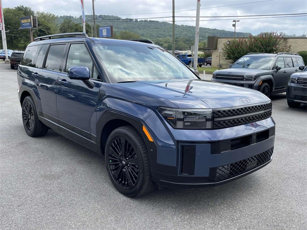2026 Hyundai Santa Fe Hybrid Calligraphy Calligraphy I4, 12 Speakers, 3rd row seats: bench, 4-Wheel Disc Brakes, ABS brakes, Air Conditioning, All Season Fitted Liners, Alloy wheels, AM/FM radio: SiriusXM, Apple CarPlay & Android Auto, Auto High-beam Headlights, Auto-dimming Rear-View mirror, Automatic temperature control, Brake assist, Bumpers: body-color, Cargo Blocks, Cargo Cover/Screen, Cargo Net, Cargo Tray, Carpeted Floor Mats, Delay-off headlights, Driver door bin, Driver vanity mirror, Dual front impact airbags, Dual front side impact airbags, Electronic Stability Control, Emergency communication system, Exterior Parking Camera Rear, First Aid Kit, Four wheel independent suspension, Front anti-roll bar, Front Bucket Seats, Front Center Armrest, Front dual zone A/C, Front reading lights, Fully automatic headlights, Garage door transmitter: HomeLink, Heads-Up Display, Heated and Ventilated Front Bucket Seats, Heated door mirrors, Heated front seats, Heated rear seats, Heated steering wheel, Illuminated entry, Knee airbag, Leather steering wheel, Low tire pressure warning, Memory seat, Navigation System, Occupant sensing airbag, Option Group 01, Outside temperature display, Overhead airbag, Overhead console, Panic alarm, Passenger door bin, Passenger vanity mirror, Power door mirrors, Power driver seat, Power Liftgate, Power moonroof, Power passenger seat, Power steering, Power windows, Quilted Premium Nappa Leather Seat Trim, Radio: AM/FM/HD Bose Premium Audio System, Rain sensing wipers, Rear anti-roll bar, Rear side impact airbag, Rear window defroster, Rear window wiper, Remote keyless entry, Security system, Speed control, Speed-sensing steering, Split folding rear seat, Spoiler, Steering wheel mounted audio controls, Tachometer, Telescoping steering wheel, Tilt steering wheel, Traction control, Trip computer, Turn signal indicator mirrors, Variably intermittent wipers, Ventilated front seats, Wheels: 20 x 8.5J Unique Dark Finish Alloy, I4.