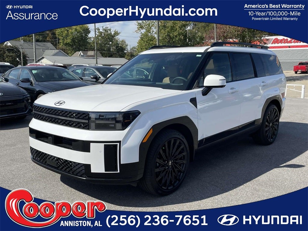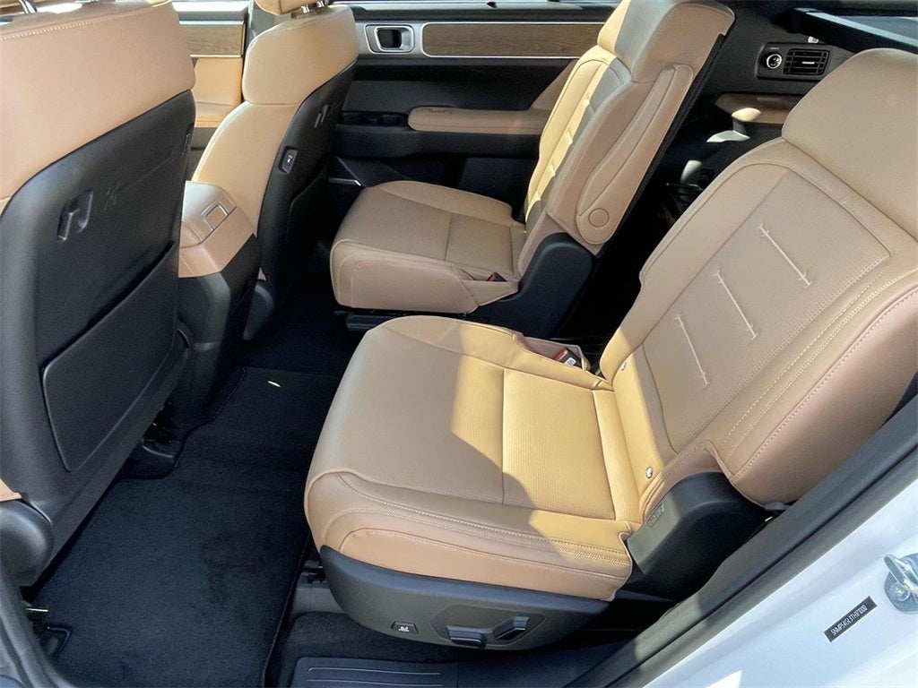 2026 Hyundai Santa Fe Calligraphy Calligraphy Pecan Brown Leather, 12 Speakers, 3rd row seats: bench, 4-Wheel Disc Brakes, ABS brakes, Air Conditioning, Alloy wheels, AM/FM radio: SiriusXM, Apple CarPlay & Android Auto, Auto High-beam Headlights, Auto-dimming Rear-View mirror, Automatic temperature control, Brake assist, Bumpers: body-color, Cargo Blocks, Cargo Cover/Screen, Cargo Net, Cargo Organizer, Cargo Tray, Carpeted Floor Mats, Delay-off headlights, Driver door bin, Driver vanity mirror, Dual front impact airbags, Dual front side impact airbags, Electronic Stability Control, Emergency communication system, Exterior Parking Camera Rear, First Aid Kit, Four wheel independent suspension, Front anti-roll bar, Front Bucket Seats, Front Center Armrest, Front dual zone A/C, Front reading lights, Fully automatic headlights, Garage door transmitter: HomeLink, Heads-Up Display, Heated and Ventilated Front Bucket Seats, Heated door mirrors, Heated front seats, Heated rear seats, Heated steering wheel, Illuminated entry, Knee airbag, Leather steering wheel, Low tire pressure warning, Memory seat, Mudguards, Navigation System, Occupant sensing airbag, Option Group 01, Outside temperature display, Overhead airbag, Overhead console, Panic alarm, Passenger door bin, Passenger vanity mirror, Power door mirrors, Power driver seat, Power Liftgate, Power moonroof, Power passenger seat, Power steering, Power windows, Quilted Premium Nappa Leather Seat Trim, Radio: AM/FM/HD Bose Premium Audio System, Rain sensing wipers, Rear anti-roll bar, Rear side impact airbag, Rear window defroster, Rear window wiper, Remote keyless entry, Roadside Assistance Kit, Security system, Speed control, Speed-sensing steering, Split folding rear seat, Spoiler, Steering wheel mounted audio controls, Tachometer, Telescoping steering wheel, Tilt steering wheel, Traction control, Trip computer, Turn signal indicator mirrors, Variably intermittent wipers, Ventilated front seats, Wheels: 21 x 8.5J Unique Dark Finish Alloy, Pecan Brown Leather.