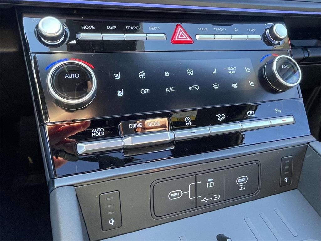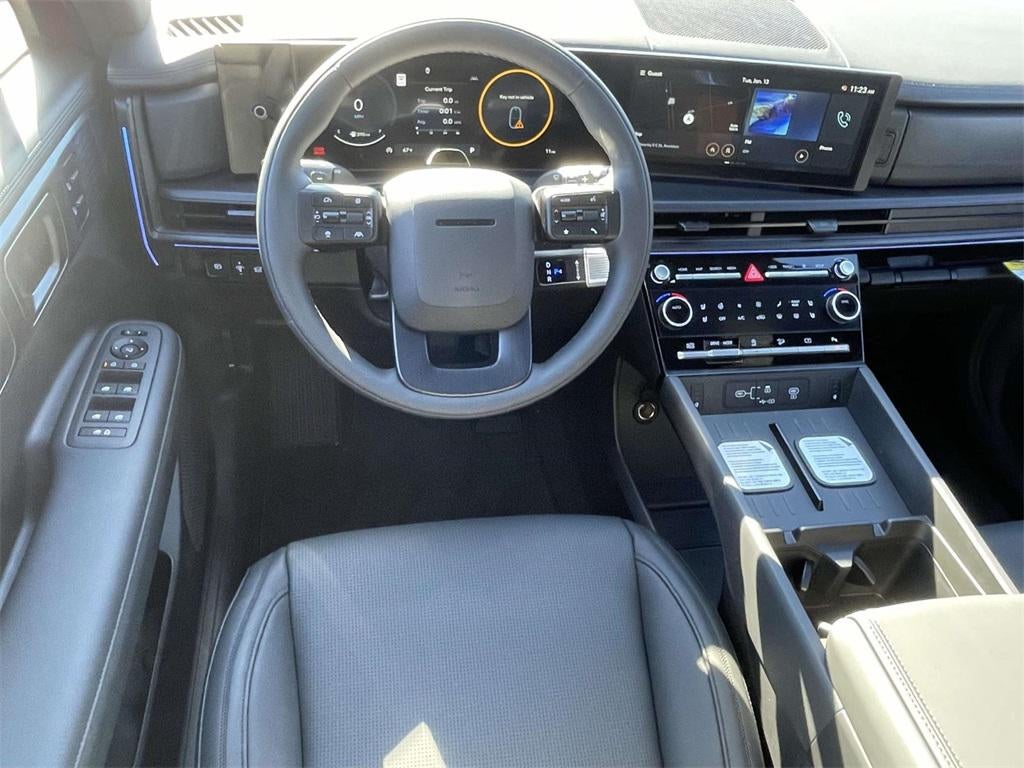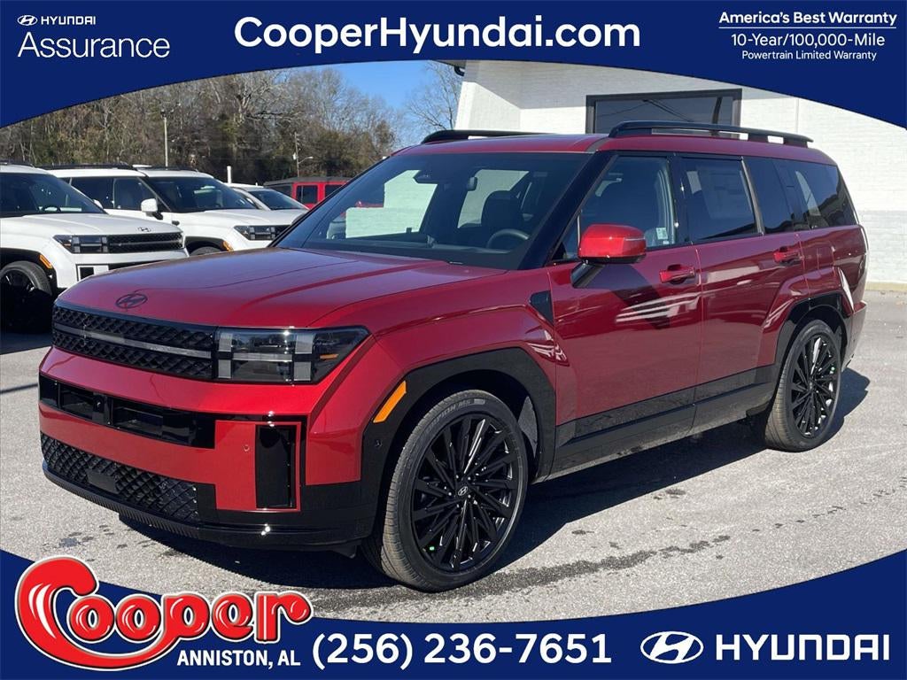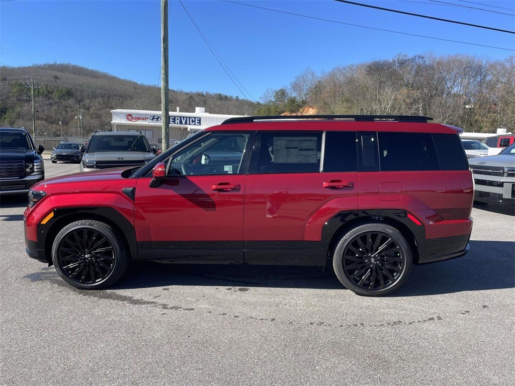 2026 Hyundai Santa Fe Calligraphy Calligraphy Black Leather, 12 Speakers, 3rd row seats: bench, 4-Wheel Disc Brakes, ABS brakes, Air Conditioning, Alloy wheels, AM/FM radio: SiriusXM, Apple CarPlay & Android Auto, Auto High-beam Headlights, Auto-dimming Rear-View mirror, Automatic temperature control, Brake assist, Bumpers: body-color, Cargo Cover/Screen, Cargo Net, Carpeted Floor Mats, Delay-off headlights, Driver door bin, Driver vanity mirror, Dual front impact airbags, Dual front side impact airbags, Electronic Stability Control, Emergency communication system, Exterior Parking Camera Rear, First Aid Kit, Four wheel independent suspension, Front anti-roll bar, Front Bucket Seats, Front Center Armrest, Front dual zone A/C, Front reading lights, Fully automatic headlights, Garage door transmitter: HomeLink, Heads-Up Display, Heated and Ventilated Front Bucket Seats, Heated door mirrors, Heated front seats, Heated rear seats, Heated steering wheel, Illuminated entry, Knee airbag, Leather steering wheel, Low tire pressure warning, Memory seat, Navigation System, Occupant sensing airbag, Option Group 01, Outside temperature display, Overhead airbag, Overhead console, Panic alarm, Passenger door bin, Passenger vanity mirror, Power door mirrors, Power driver seat, Power Liftgate, Power moonroof, Power passenger seat, Power steering, Power windows, Quilted Premium Nappa Leather Seat Trim, Radio: AM/FM/HD Bose Premium Audio System, Rain sensing wipers, Rear anti-roll bar, Rear side impact airbag, Rear window defroster, Rear window wiper, Remote keyless entry, Roof Rack Crossbars, Security system, Speed control, Speed-sensing steering, Split folding rear seat, Spoiler, Steering wheel mounted audio controls, Tachometer, Telescoping steering wheel, Tilt steering wheel, Traction control, Trip computer, Turn signal indicator mirrors, Variably intermittent wipers, Ventilated front seats, Wheels: 21 x 8.5J Unique Dark Finish Alloy, Black Leather.